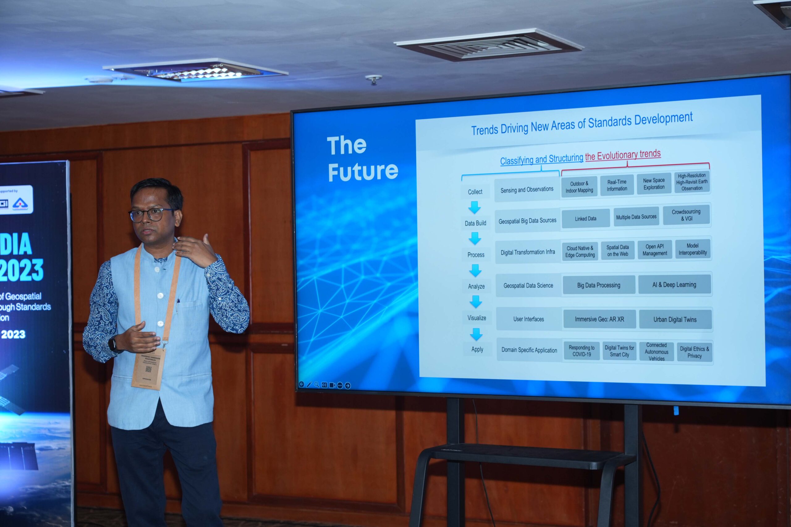 Harsha Madiraju, Lead – OGC India Forum, set the stage with a presentation on the economic impact of standards in geospatial technologies. Citing the 2012 ISO publication on Standards and Economic Growth, he highlighted the positive correlation between the proliferation of standards and national economic development. This underscores the importance of investment in geospatial interoperability and its tangible benefits to industries and economies.