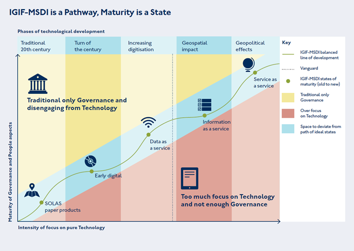 The IGIF-MSDI Balanced Pathway of Development seeks to promote inclusive geospatial development via two key messages of “Driving Technology, not being driven by Technology” and “Making the Data count, not just counting the Data”. These twin ideas promote the effective governance of Technology and Standards to meet sovereign national requirements, however expansive or constrained, over the acquisition and possession of the latest technological solutions independent of cost-benefit considerations.